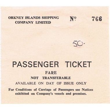 Water Ticket, Orkney Island Shipping Co Ltd., Passenger Ticket, Serial No 766
