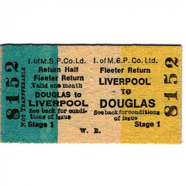 Water Ticket, I of M.S.P.Co.Ltd, Fleeter Return, Liverpool - Douglas, Serial No 8152