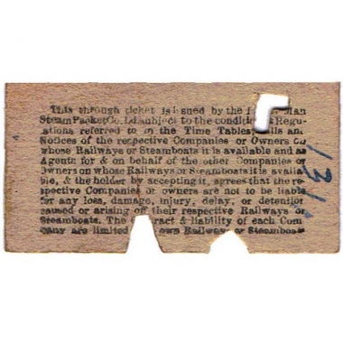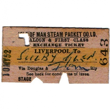 Water Ticket, I of M.S.P.Co.Ltd, Saloon, Liverpool - Sulby Glen via Douglas IOM Railway, Serial No 643