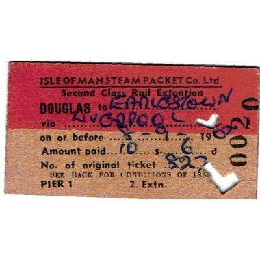 Water Ticket, I of M.S.P.Co.Ltd, Saloon, Douglas - Earlstown via Liverpool, Serial No 0020