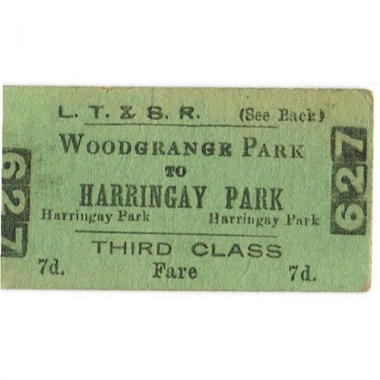 Travel Ticket, LT&SR, Woodgrange Park - Harringay Park, Serial No 627