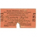 Travel Ticket, GWR, Cardiff - , One Bicycle, Serial No 831