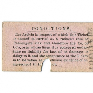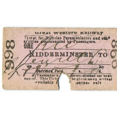 Travel Ticket, GWR, Kidderminster - , One Bicycle, Perambulator and other article, Serial No 866