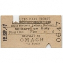 Railway Ticket, Northern Ireland, GNR(I), Belfast - Omagh, Military on Duty, Serial No 0647