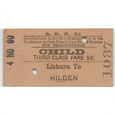 Railway Ticket, Northern Ireland, GNR(I), Lisburn - Hilden, Serial No 1037