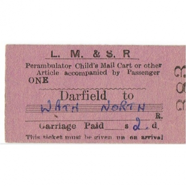Travel Ticket, LM & SR, Darfield - Wath North, East, Perambulator Child's Cart, Serial No 383