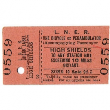 Travel Ticket, LNER, High Shields - , One Bicycle or Perambulator, Serial No 0559