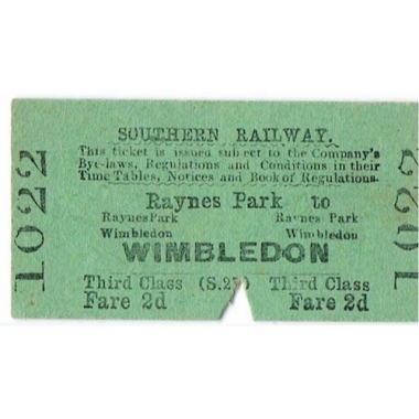 Travel Ticket, SR, Raynes Park - Wimbledon, Serial No 1022