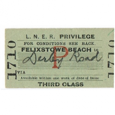 Travel Ticket, LNER, Felixstowe Beach - , Serial No 1710