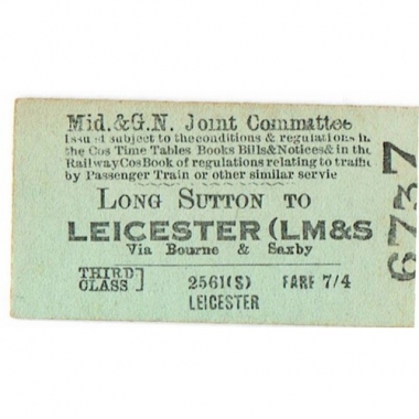 Travel Ticket, Mid & GN, Long Sutton - Leicester, Serial No 6737