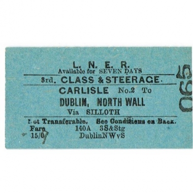 Travel Ticket, LNER, Carlisle - Dublin, North Wall, Serial No 065