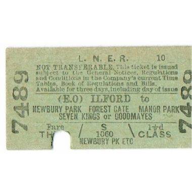 Travel Tickets, LNER, Ilford - Newbury Park, Serial No 7489