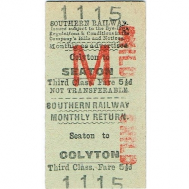 Travel Ticket, SR, Colyton - Seaton, Serial No 1115