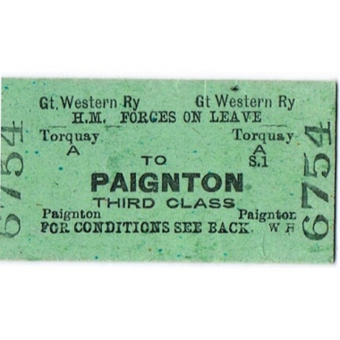 Travel Ticket, GWR, Torquay - Paignton, Forces on Leave, Serial No 6754