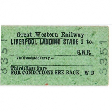 Travel Ticket, GWR, Liverpool Landing Stage 1 - , Serial No 3351