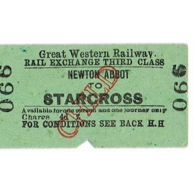 Travel Ticket, GWR, Newton Abbot - Starcross, Serial No 066
