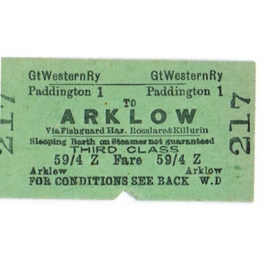 Travel Ticket, GWR, Paddington - Arklow, Serial No 217