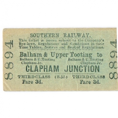 Travel Ticket, SR, Balham & Upper Tooting - Clapham Junction, Serial No 8894
