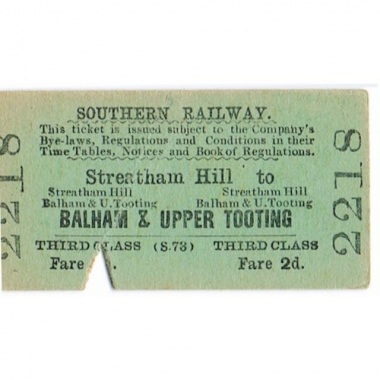 Travel Ticket, SR, Streatham Hill - Balham & Upper Tooting, Serial No 2218