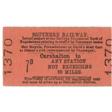 Travel Ticket, SR, Carshalton - , One Bicycle or Perambulator, Serial No 1370