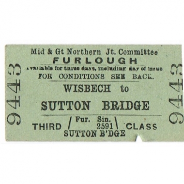 Travel Ticket, Mid & GN, Wisbech - Sutton Bridge, Serial No 9443