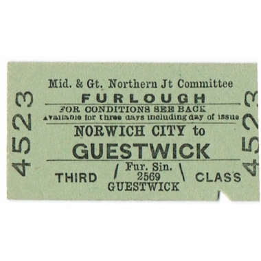 Travel Ticket, Mid & GN, Norwich City - Guestwick, Serial No 4523