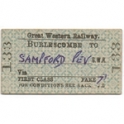 Railway Ticket, GWR, Burlescombe - Sampford Pev, Serial 133