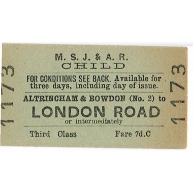 Travel Ticket, MSJ & AR, Altrincham & Bowdon - Manchester (London Road), Serial No 1173