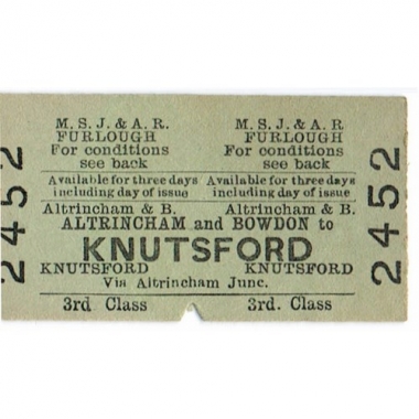 Travel Ticket, MSJ & AR, Altrincham & Bowdon - Knutsford, Serial No 2452