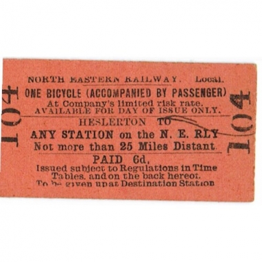 Travel Ticket, NER, Heslerton - , One Bicycle, Serial No 104