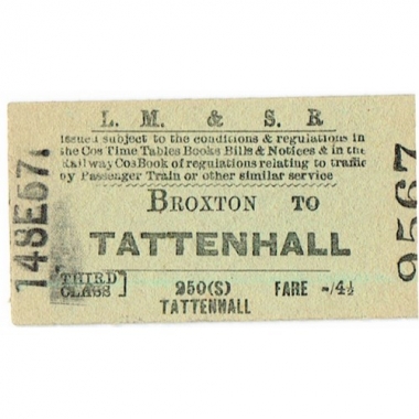 Travel Ticket, LM & SR, Broxton - Tattenhall, Serial No 9567