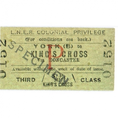 Travel Ticket, LNER, Colonial Privilege, York (B) - King's Cross, Serial No 0152