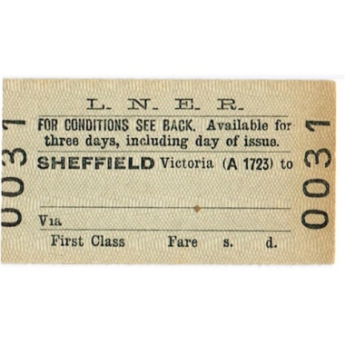Travel Ticket, LNER, Sheffield (Victoria) - , Serial No 0031