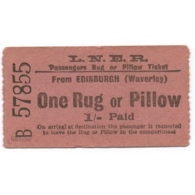Railway Ticket, LNER, Edinburgh - , One Rug or Pillow, Serial No B57855