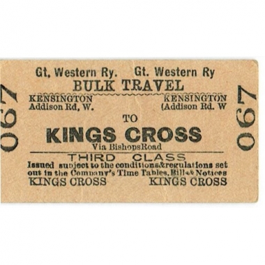 Travel Ticket, GWR, Bulk Travel, Kensington (Addison Rd. W) - Kings Cross, Serial No 067