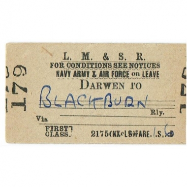 Travel Ticket, LM&SR, Dawen - Blackburn, Serial No 179