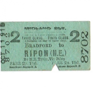 Travel Ticket, MR, Bradford - Ripon (N.E.), Serial No 8702