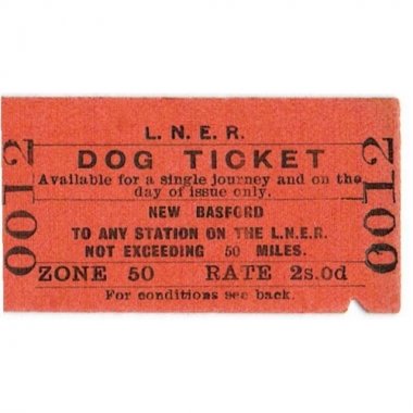 Travel Ticket, LNER, New Basford - , One Dog, Serial No 0012