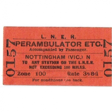 Travel Ticket, LNER, Nottingham (Vic.), Perambulator etc., Serial No 0157