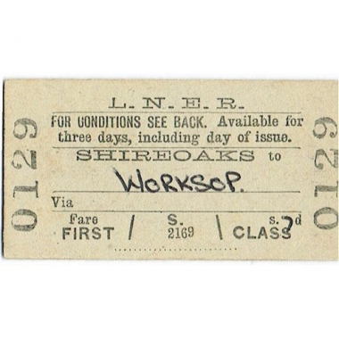 Travel Ticket, LNER, Shireoaks - Worksop, Serial No 0129