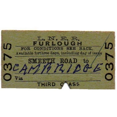Travel Ticket, LNER, Smeeth Road - Cambridge, Serial No 0375