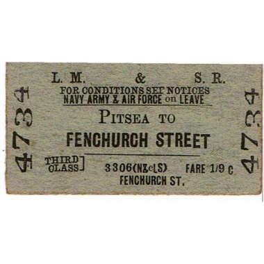 Travel Ticket, LM&SR, Pitsea - Fenchurch Street, Serial no 4734