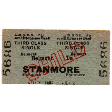 Travel Ticket, LM&SR, Belmont - Stanmore, Serial no 5686