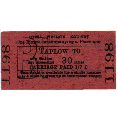 Travel Ticket, GWR, Taplow - , One Bicycle, Serial No 1198