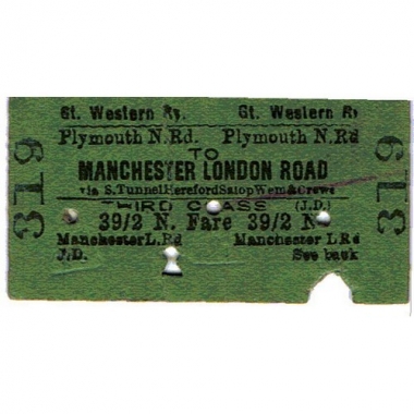 Travel Ticket, GWR, Plymouth N Rd - Manchester London Road, Serial no 319