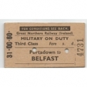 Railway Ticket, Northern Ireland, GNR(I), Portadown - Belfast, Military on Duty, Serial No 4731