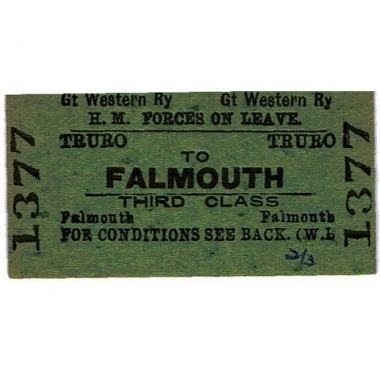 Travel Ticket, GWR, Truro - Falmouth, Serial no 1377