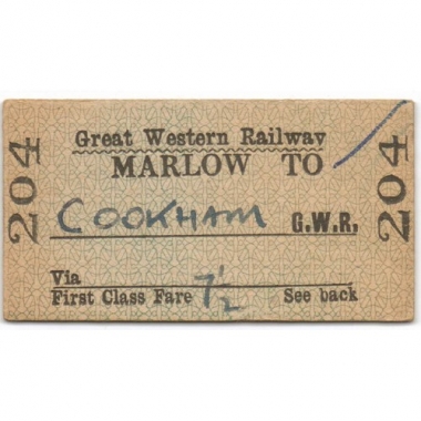 Railway Ticket, GWR, Marlow - Cookham, Serial No 204