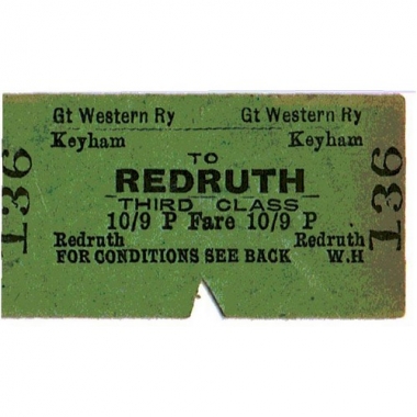 Travel Ticket, GWR, Keyham - Redruth, Serial no 136