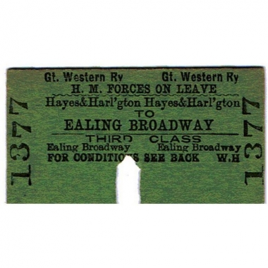 Travel Ticket, GWR, Hayes & Harl'gton - Ealing Broadway, Serial no 1377